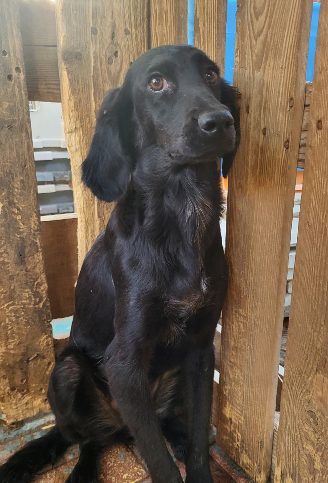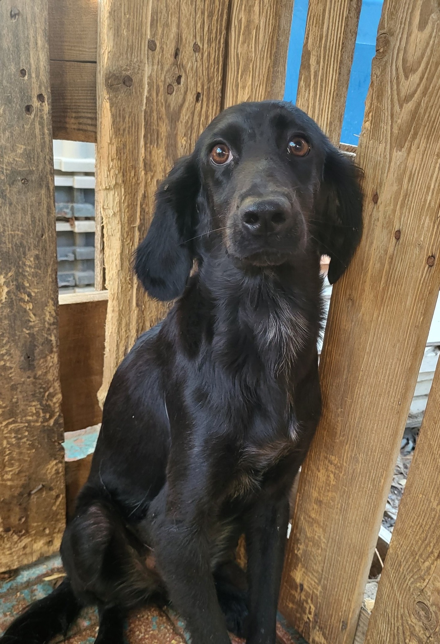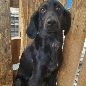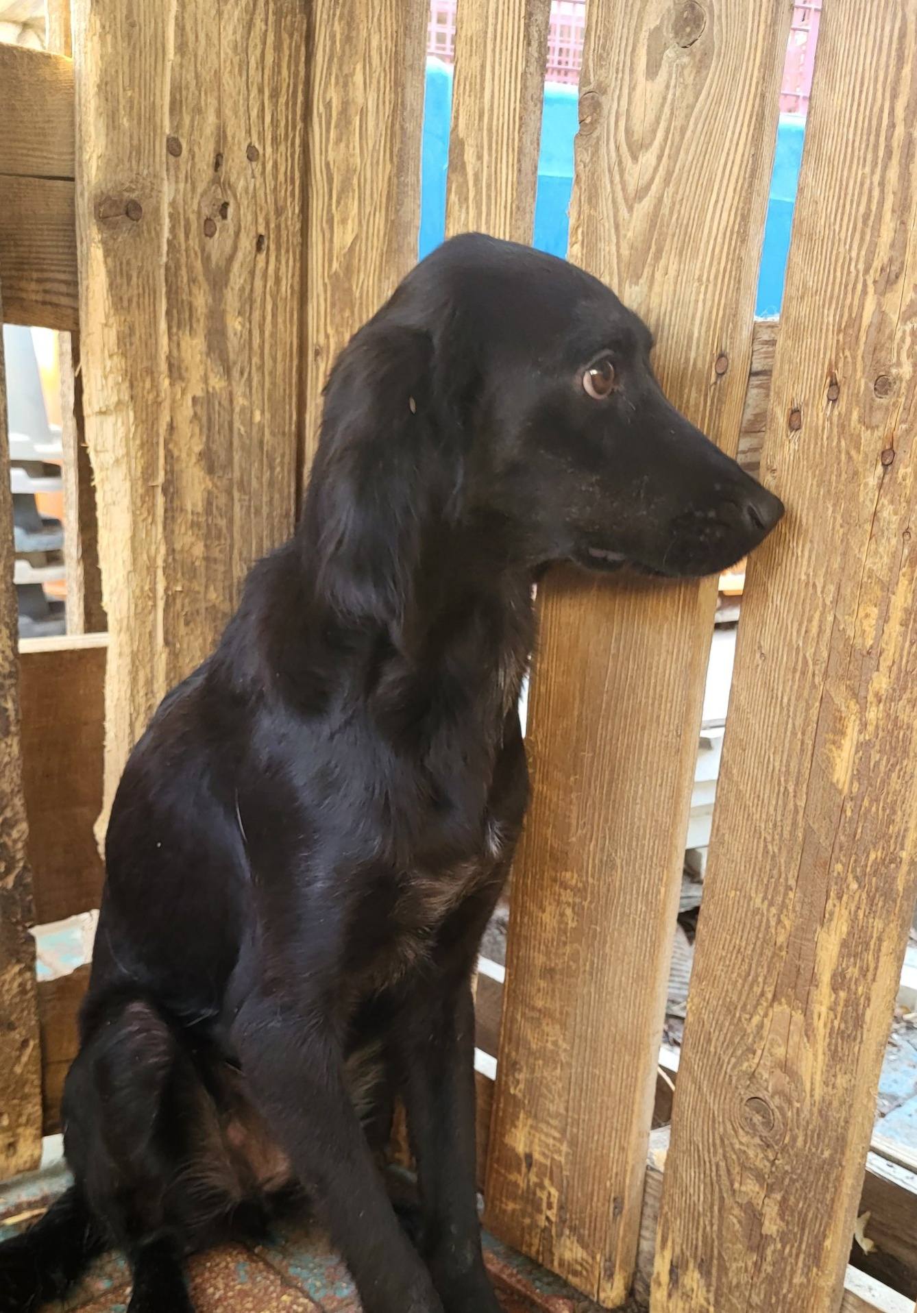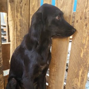 The sweet girl is obviously a spaniel mix. Shes a bit more tallish than spaniels so we ‘re guessing spaniel/pointer? Shes a young girl, a pup around 7-9 months old who had to fight to survive from starvation. She was terrified when we got her and was trying to hide her face between her legs. Now shes sitting some times with the other dogs, shes coming out to see us. Still not coming close to us but we understand her. She went through a lot cause of humans and its not easy to trust again but we will get there. Shes fine with other dogs and cats, its only humans the issue which we understand.