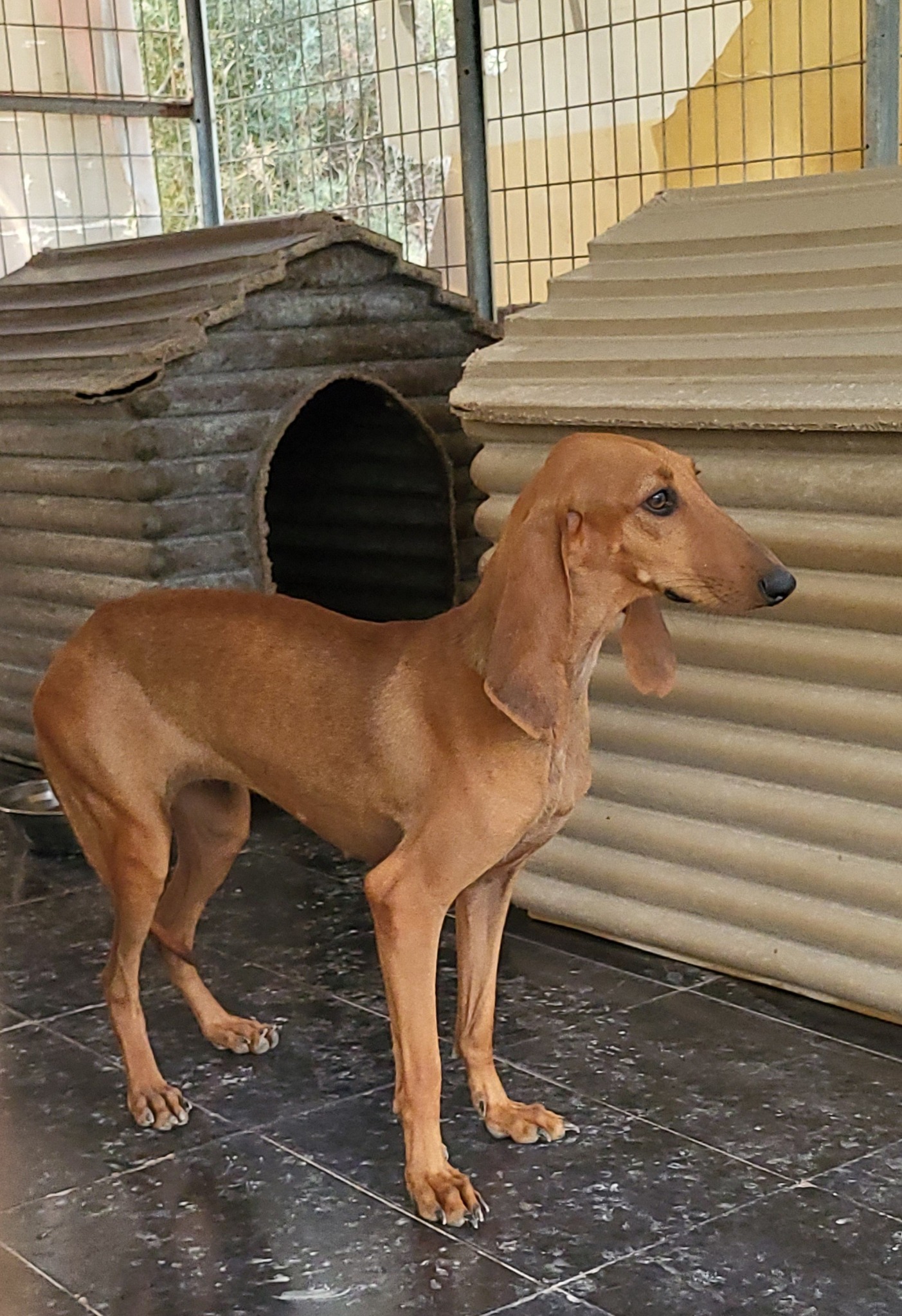 Well after these few months we have some good news. Shes not hiding in the corners. Shes going out of the cage on play time and has some fun with the other dogs. When it feeding time she knows it and waits impatiently her turn. Shes still scared but nothing like the first days we got her. We know segugios are timid and sensitive characters so shes got all the time she wants.