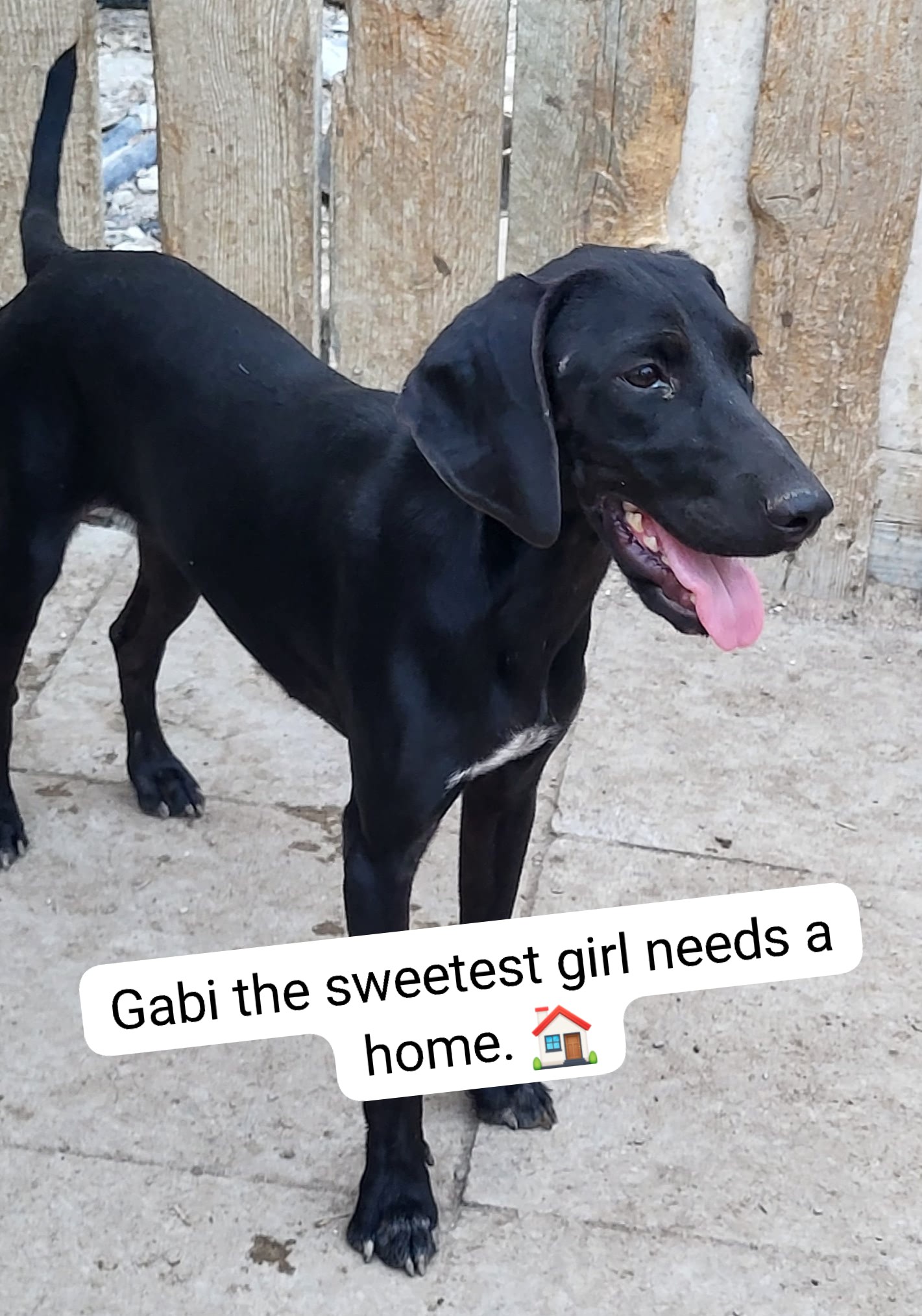 Gabi is obviously a pointer cross but shes really small, around 10-12 kilos. Shes brilliant with other dogs, not fussed about cats, likes to play since shes 7,5 months old. Shes very sociable, very loving, very cheerful and very sweet dog. She could never harm anything and trust us shes a delight to be close to. Gabi gives unconditional love to everyone even though shes in a cage. She and Sahara are very sweet and loving doggies. They would be amazing in a home with children either of them.