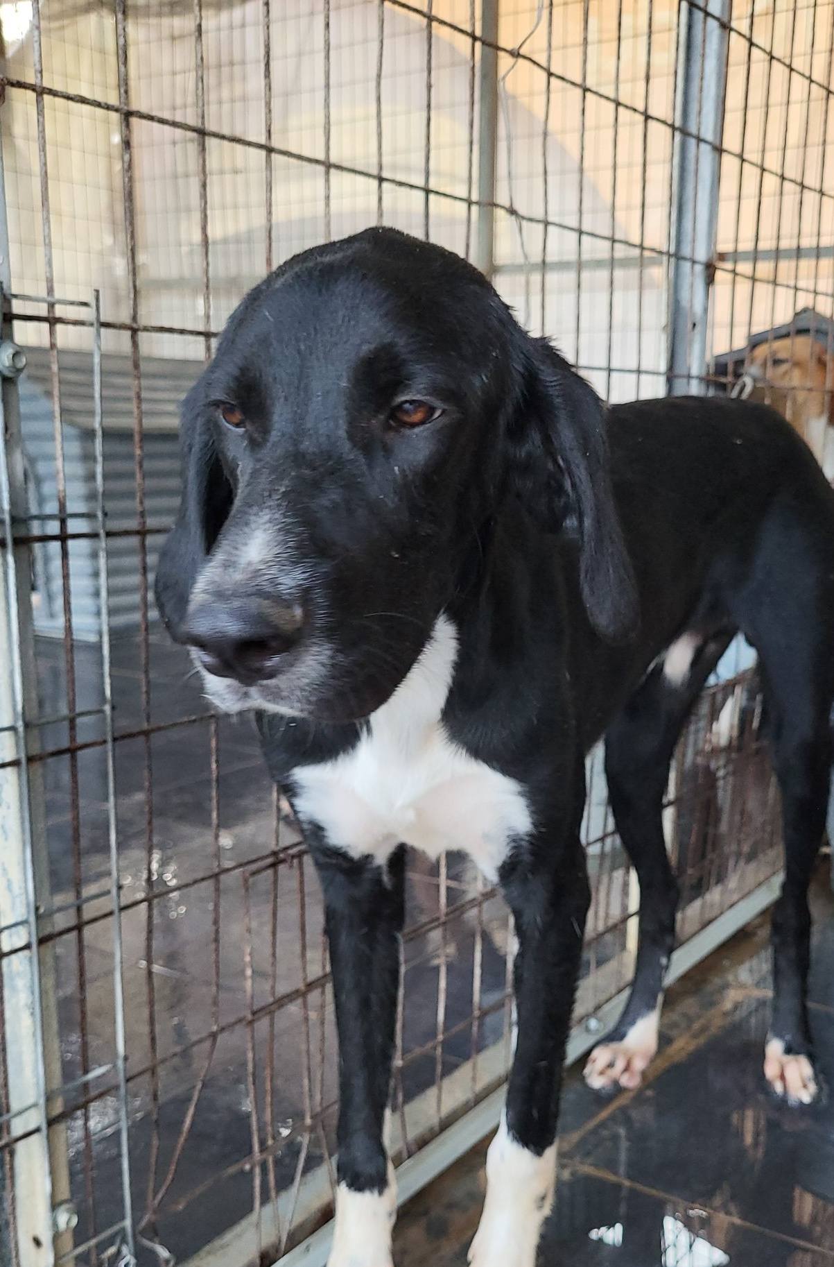 From what we see, this gorgeous boy is a spaniel pointer mix. Hes got the spaniel fur but not fully. Hes tall and slim, leggy like all pointers. His colours are colours that both breeds have. Now hes between 15-20 kilos and close to full size. Hes all legs and skinny cause hes a teenager but he will fill up. Pauly loves food and hes growing up nicely bless him. Hes sociable which is amazing cause the other dogs helped him a lot with his fears.