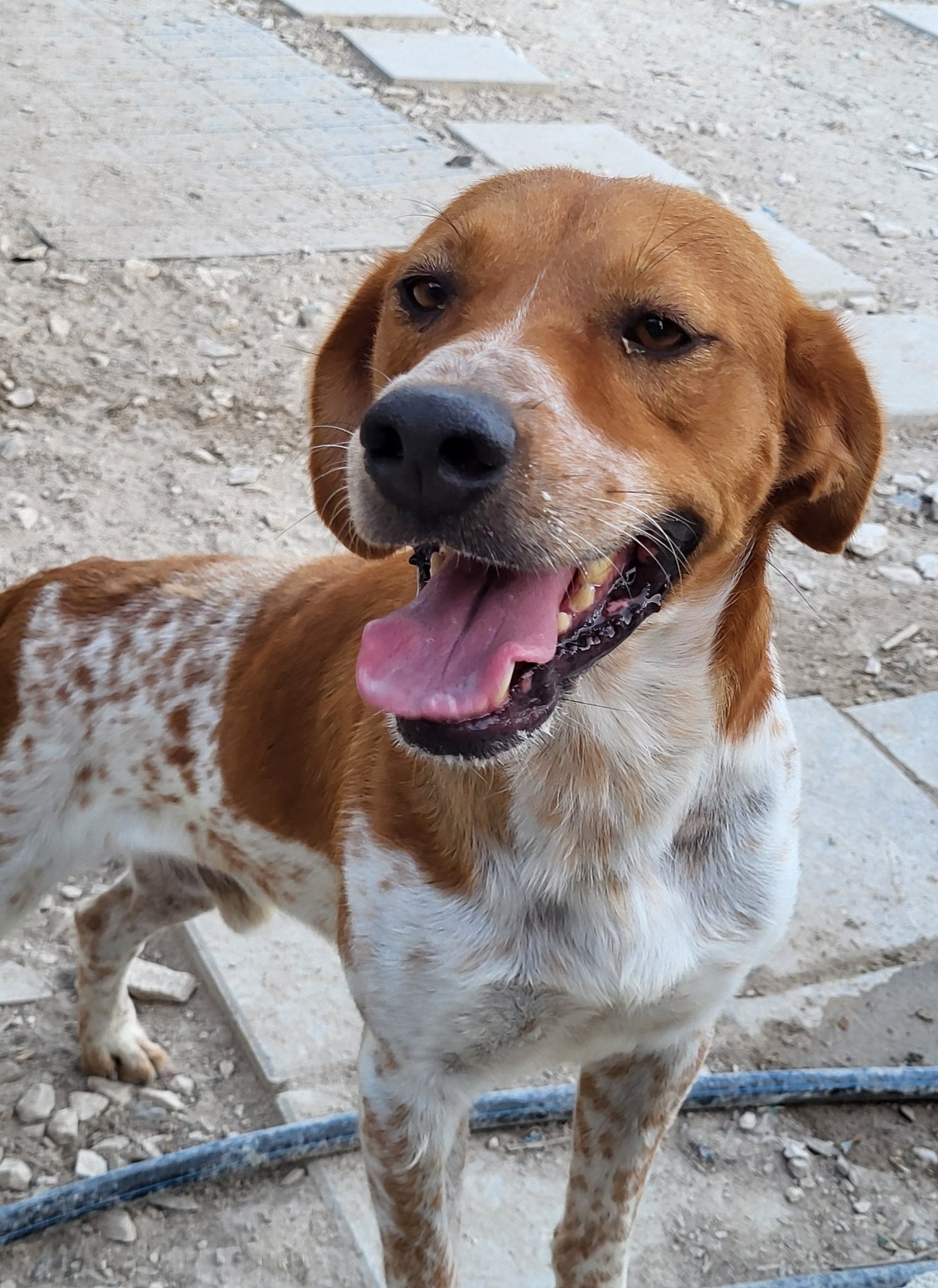 Our sweet boy that of course needs a forever home, is a brittany spaniel cross around 3 years old. Most probably hes mixed with a pointer. We can see the cheerfulness of the pointer and the craziness of the spaniel. We us he can be as daft as he wants, to run all over and do zoomies like a nutcase. Hes large size around 20 kilos and hes fine with other dogs. Sometimes hes a bit too much for other dogs so he will need some training to learn manners. He doesn’t like cats but with his breeds, its understandable. Socrates can be adopted in Cyprus but also abroad. Hes a lovely boy and he can be an only dog or live with others. Its best if hes adopted in a family with children over 12 years old cause we dont think he actually lived with children ever. If anyone can help this boy and give him a life out of the cage, please message us. You can get our application form from our website. Download it and send it to our email address. If you ‘re having any difficulties, message us and we will send it to you. Adoption fee aplies and we do homechecks.